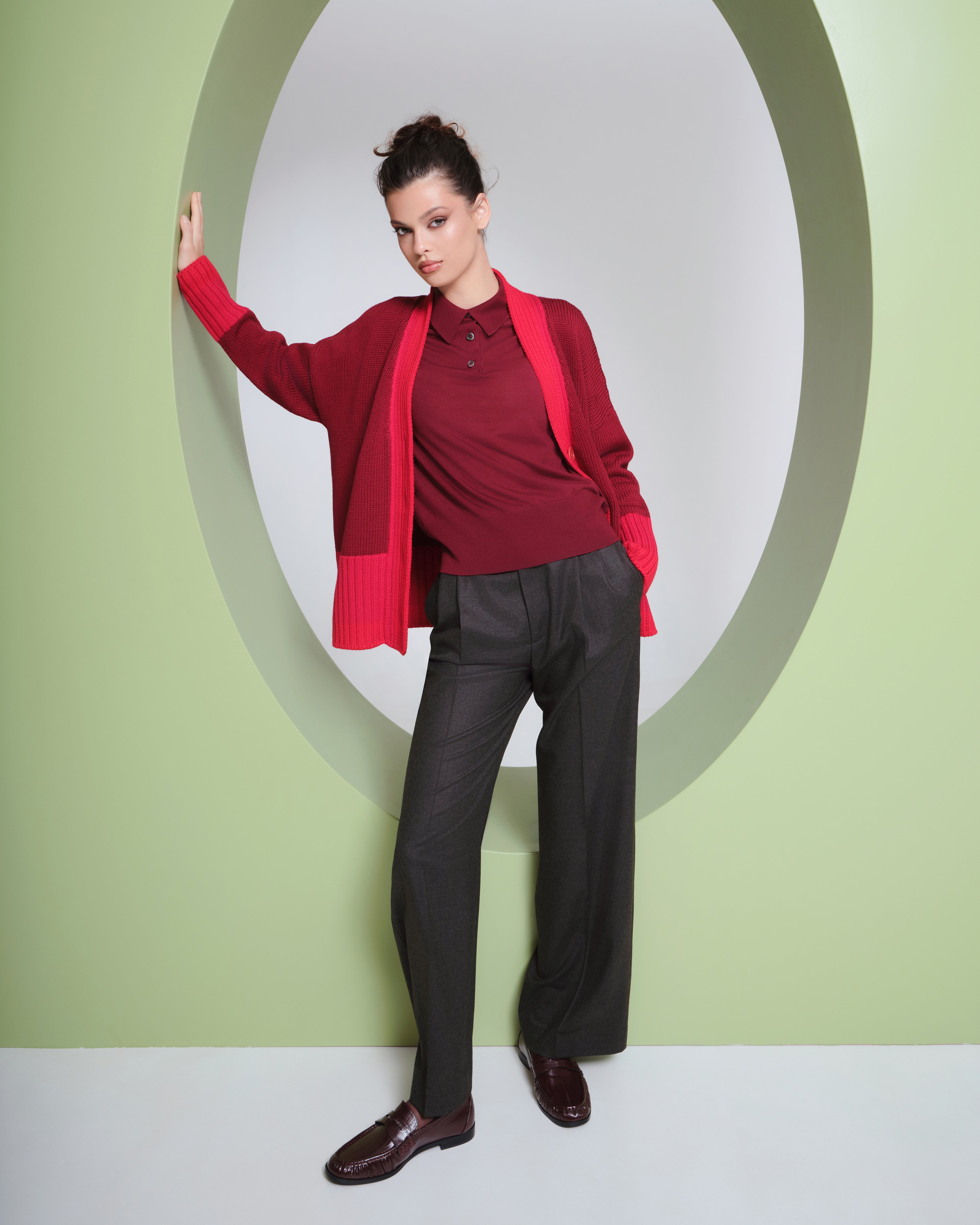 Pentru această colecție, au fost alese țesături de cea mai înaltă calitate, precum mătase, cașmir și lână, completate de jacquard-uri realizate în Como și printuri aplicate pe tricotaje, care conferă identitate și expresivitate fiecărei piese. Tonurile sezoniere, detaliile atent lucrate și materialele prețioase transformă fiecare look într-o declarație de stil feminin și atemporal.